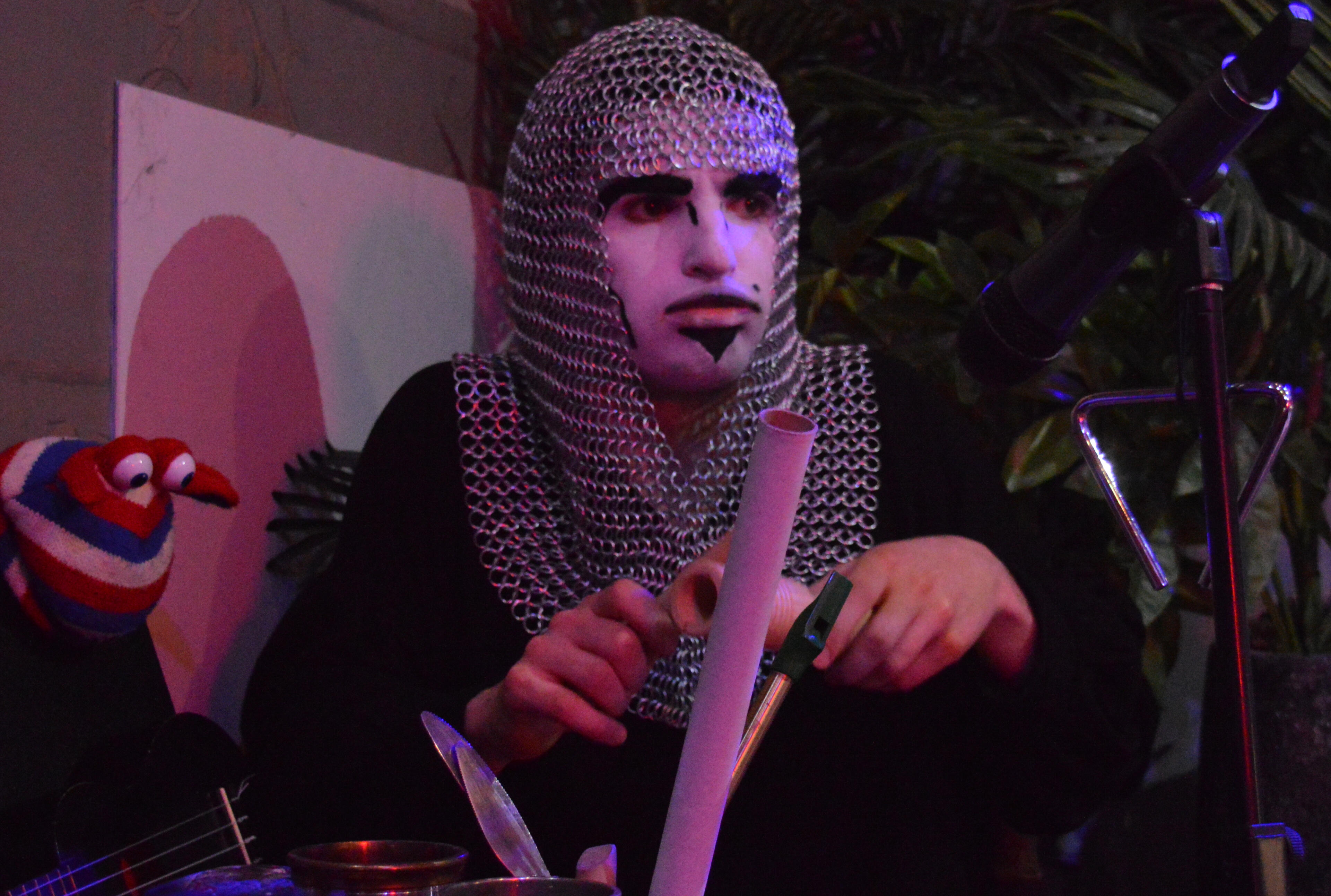 Flenn began as a bitter has-been of a puppet, think older comedian who just complains about the younger comics who are badly hiding their own feelings of irrelevance. The show grew from there until I had moldy sandwiches and a horrible amalgam of rotting puppets begging for attention. The idea of puppet body horror was both amusing and unnerving to me. It meant the gore would stand out while still giving the audiences the horror they came for, minus the mess I've dealt with first hand on other shows. The show is an experimentation in several realms for myself. I'm taking on the directing/writing role for the first time while moving my musical sensibilities from pre-recorded soundtracks to live performance.