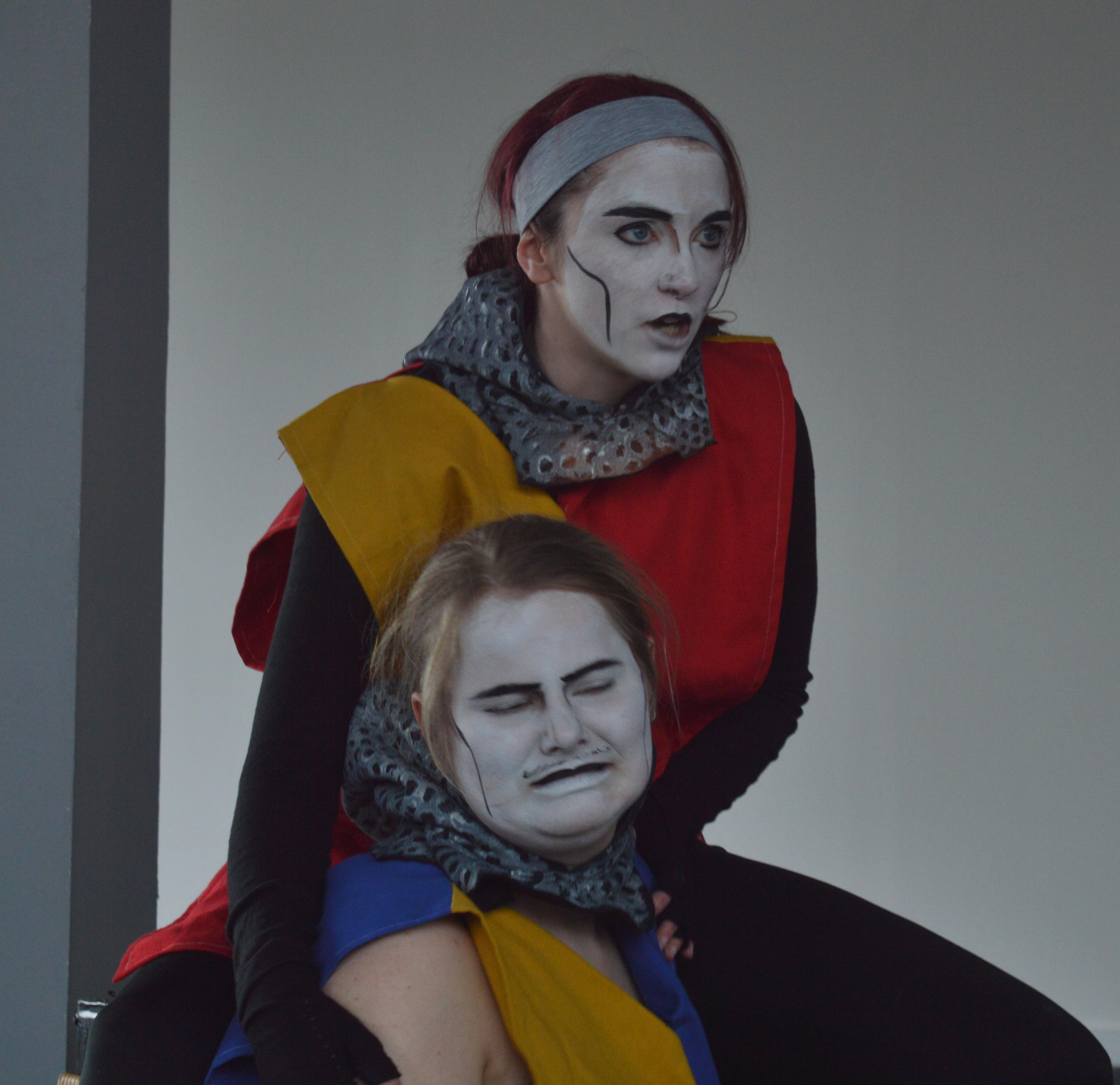 Working with drag and clown conventions lets us expose the silliness of strict gender roles - particularly the idealised and almost fantastical forms of masculinity associated with knighthood. Knights are disciplined and chivalrous - clowns are chaotic and ridiculous. Our clown-knights take themselves super seriously - and the more seriously they do, the more we laugh at them when they fail.